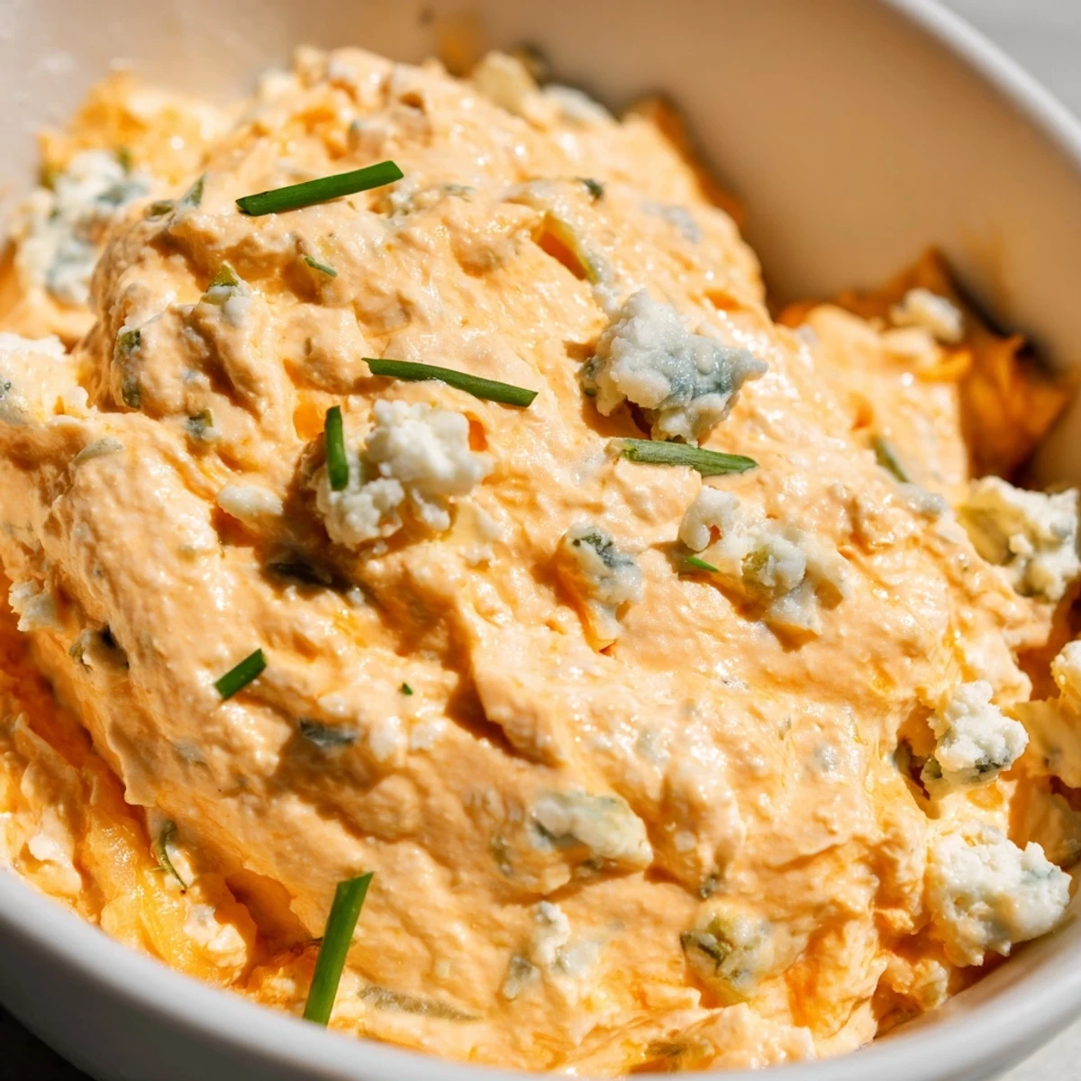 This velvety dip combines the bold kick of buffalo wing sauce with the bright crunch of fresh dill pickles. A smooth cream cheese base gets elevated with sour cream and mayonnaise, then loaded with shredded cheddar and optional blue cheese crumbles. Fresh chives and garlic powder add layers of flavor, while pickle juice brings everything together. Perfect for scooping with chips, pretzels, or veggie sticks during your next gathering.