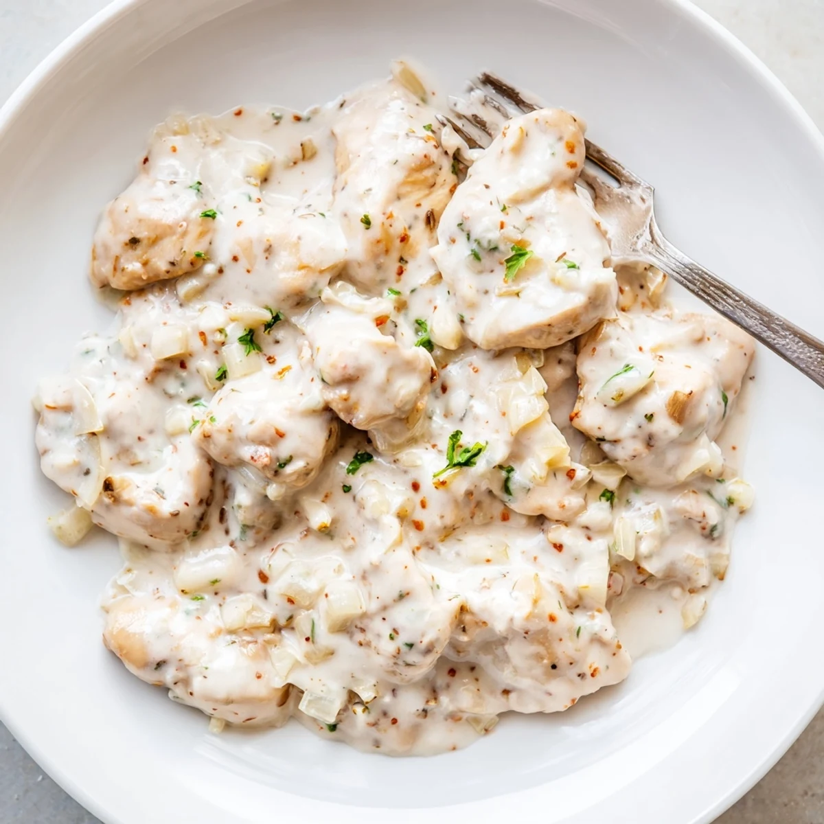 Six boneless chicken thighs transform into fall-apart tender goodness after six hours in the slow cooker. The rich, velvety gravy combines heavy cream, chicken broth, and aromatic Italian seasoning with paprika and garlic. A simple cornstarch slurry thickens the sauce during the final minutes, creating the perfect consistency for spooning over mashed potatoes or rice.
